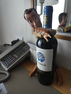 In the olden days when the sailors would go around the Horn they'd get their ear pierced and put a gold hoop in it. I think you need to do that! :-) I'm not sure that Woody liked hanging on the light fixture! He's more at home wrapped around a bottle of wine. Have fun! ((hugs)), Teresa :-)